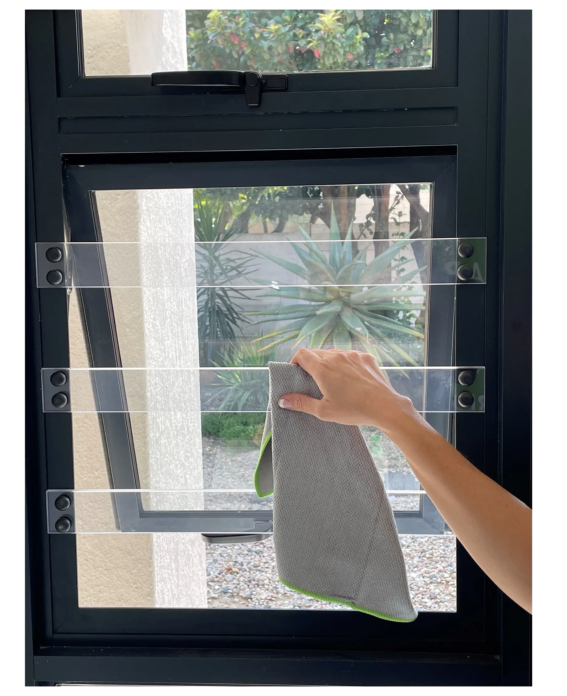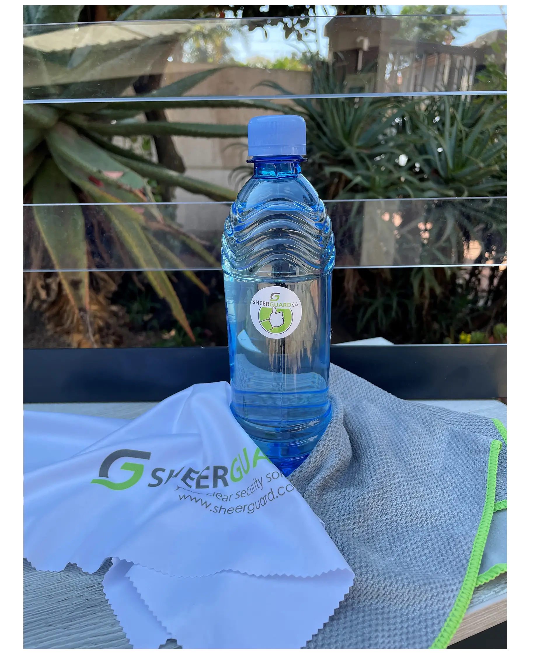 The basic cleaning agent for all SheerGuard polycarbonate products is lukewarm water using a soft microfibre (dust) cloth to loosen any dirt and grime, then dry with a soft cloth to prevent water spots.